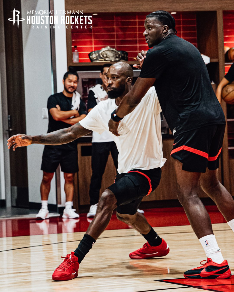 北京时间8月25日,火箭官方社媒更新,晒出了球队夏天的最新训练照。新援卡佩拉已经现身火箭训练馆,与阿门-汤普森、范弗利特、杰夫-格林等人一起训练。有美媒认为卡佩拉将在火箭赛季后半程扮演关键角色。
